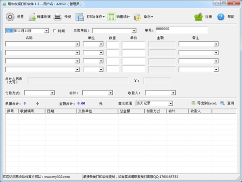 ??10、可将收据记录导出excel表中。