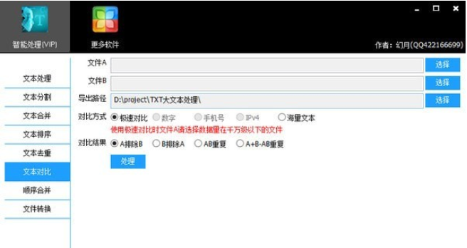 对比方式可选:极速对比、数字、手机号、IPv4、海量文本