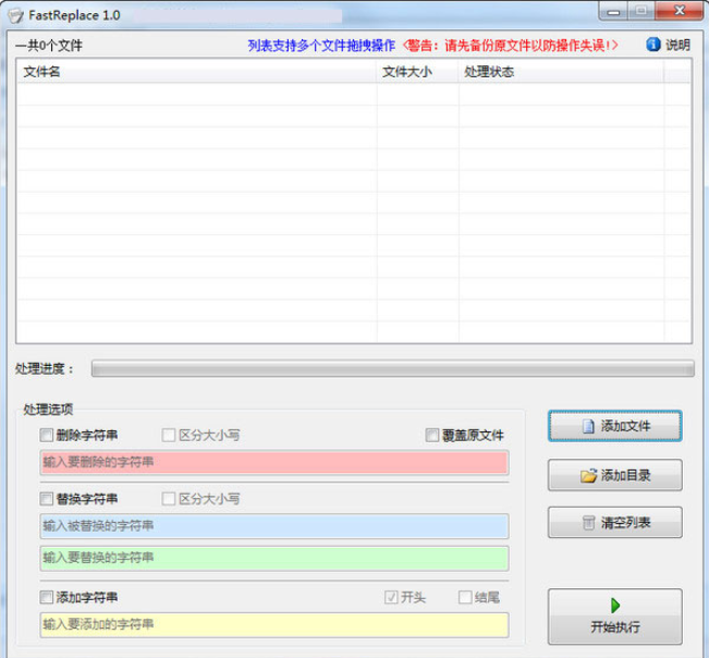 FastReplace是款操作很简单的文本处理软件。FastReplace支持大文本处理,但是为了效率忽略超过200MB的文本文件,支持列表保存读取功能。