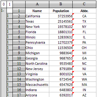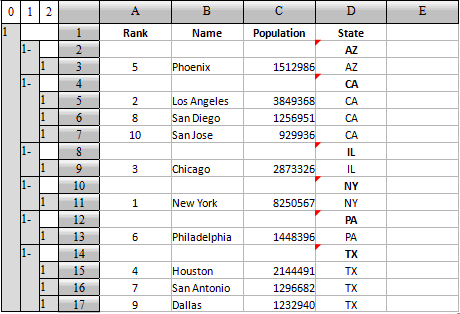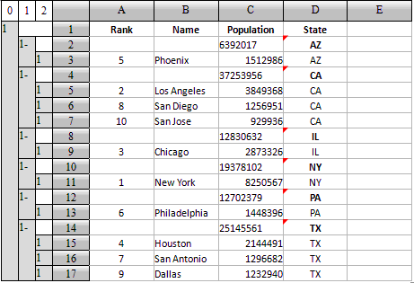 下面是部分城市的人口信息,按州进行了分组,州简称设为州一层的主格: