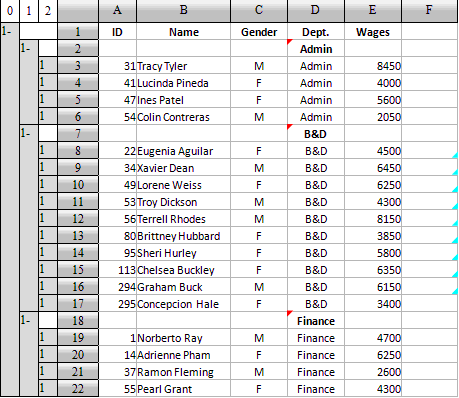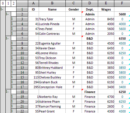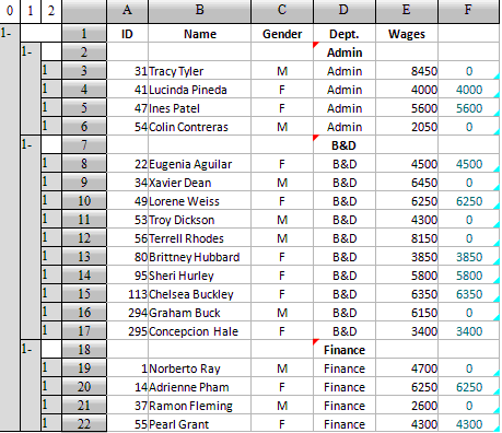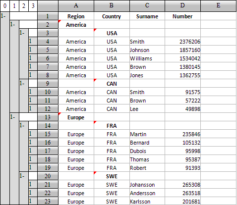 计算表中采用真实的分组,允许多层分组且不限制层数。这样就可以根据需要进行分组,拆除分组,重新分组等等操作。在分组后也可以进行各种数据操作,如对组中的记录,或者对各个分组,执行排序、过滤等操作