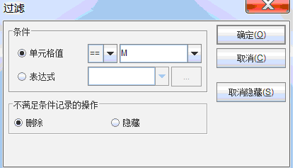 先对性别执行过滤,只保留男性员工的数据,选定C3执行过滤,设定如下: