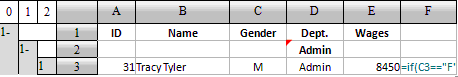 根据需要,先计算每个部门中女员工的最高工资,为此,先添加一列,整理女员工薪水,在F3中添加公式=if(C3==”F”,E3,0):