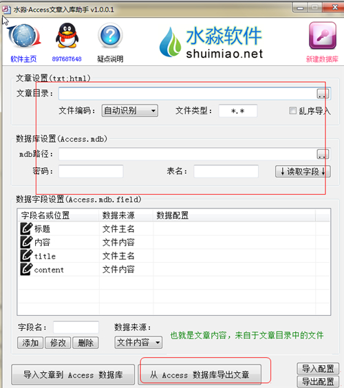 1、在导入前,请设置好导入的文章目录和Access数据库路径(.mdb)。