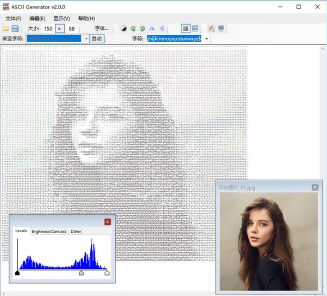 2.支持手动调整ASCII码密度水平,图片亮度、对比度和抖动程度