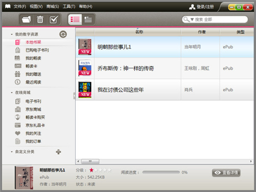 内置京东电子书刊频道,提供丰富的免费与付费内容,这些内容可直接下载到LeBook客户端