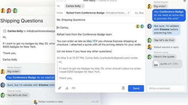 在邮件线程内评论,并开始与焦点话题的新聊天。