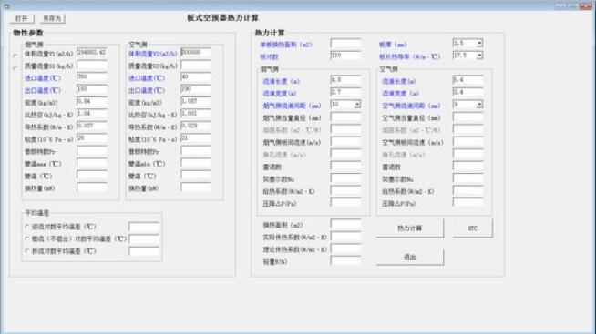 可以进行板式换热器的传热和压强计算,根据物性参数(烟气侧、空气侧),计算热力值。计算换热面积、实际传热系数、理论传热系数及裕量值。