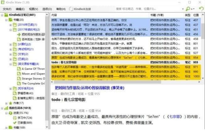 ??导入时Kindle Mate将合并导入到现有书籍与作者中,并根据原始笔记颜色自动设置对应的Kindle Mate颜色标签;Kindle