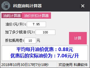 3、输入当前油价,加油金额,折扣金额,点击计算即可获得每升优惠价格