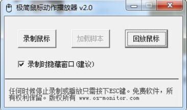 极简鼠标动作播放器是一个记录鼠标动作的程序,可以记下鼠标在你电脑上操作的一举一动,并可以形成回放脚本文件保存起来,供下次查看时回放,支持录制任意长度的鼠标动作。