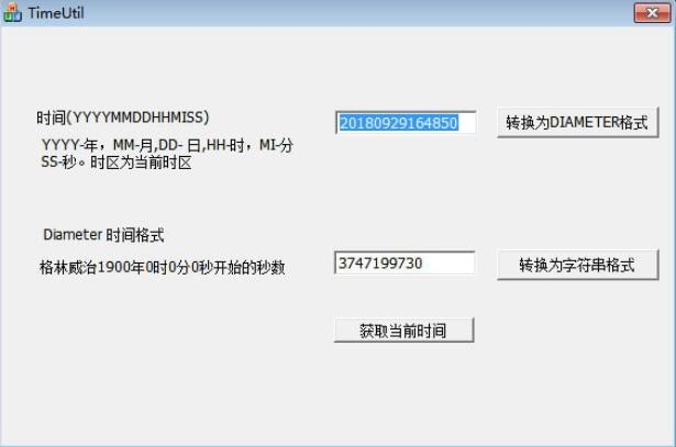 能够将任意时间转换为标准格林威治时间,转换时间为DIAMETER格式,将Diameter时间格式转换为字符串格式。