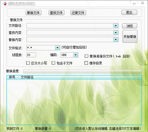 ??1、文本替换专家,使用简单,功能强大,支持多级目录同时替换,支持大小写匹配,支持文件备份,支持文件查找,智能历史替换方案记录以及智能备份文件批量还原系统,让文本查找、批量查找、替换、批量替换、重复查找替换及批量备份还原更轻松,自带简洁高效文本编辑功能,让你的文本修改更加得心应手,高效跟踪引擎以及完善的操作报表,让操作结果清晰明了
