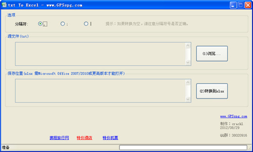 txt转excel工具(txt To Excel)官方版是一款非常方便的把txt文件转换为excel的小工具,绿色免费。(转换的xlsx需Microsoft Office 2007/2010或更高版本才能打开)。