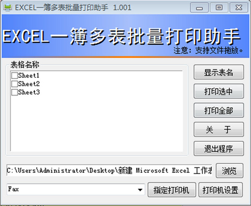 4、本程序支持拖放操作,即可以把excel文件拖进来,程序自动获取路径