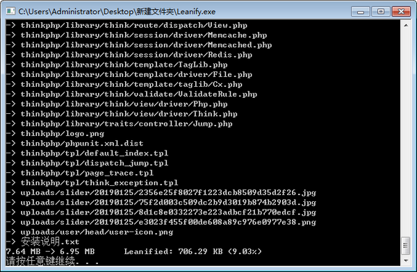 Leanify最新版是一款页面简洁直观、上手非常容易操作的且能够将文件体积再压缩的软件,利用Leanify最新版可以将常用的压缩格式文件进行再压缩,从而减小文件的体积,使用起来也非常的简单!