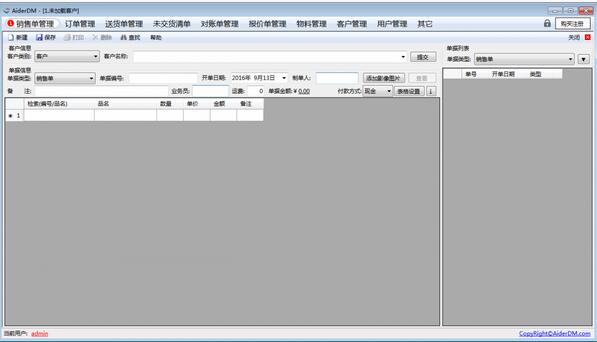 AiderDM送货单打印软件最新版是一款十分优秀的送货单打印软件,AiderDM送货单打印软件最新版拥有强大的操作界面,支持对销售单的管理,订单管理、送货单管理、未交货清单、对账单清单、报价单管理、物料管理、客户管理、用户管理等。