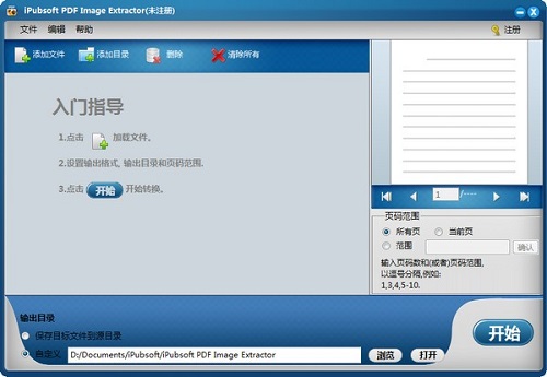 您可以通过选中“当前”按钮或输入页码来设置要提取的页面范围。或者,程序将从整个PDF文件中提取“所有”图像。