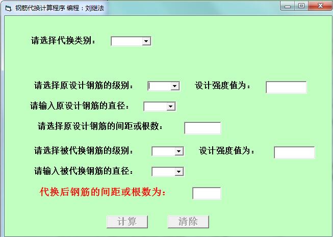 钢筋代换计算程序最新版是一款计算非常准确且实用的钢筋代换计算工具,钢筋代换计算程序最新版内置丰富的功能,其拥有柱梁代换和墙板代换,用户输入原设计钢筋参数、被代换钢筋的参数就可计算代换后钢筋的间距或根数了,是一款f非常方便便捷的软件。