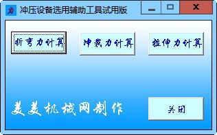冲压设备选用辅助工具官方版是一款操作简单、轻松使用的冲压力计算辅助软件,冲压设备选用辅助工具官方版可以很方便的计算出冲裁、折弯、拉伸各个工序在成型过程中所需的力。如果您是在校学生或刚刚工作不久的冲压模具设计人员,冲压设备选用辅助工具将会给您带给许多帮助。