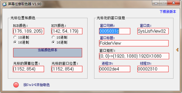 2. 支持后台取色。本工具在最小化后,仍然可以取色,并通过快捷键开始和停止。