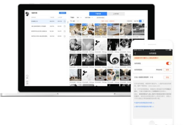 修图师输入“协同修图码”,查找需要修图的云相册,并设置照片的下载与上传目录,PC助手即可自动将待修图的照片同步到下载目录;修图师修完图后将照片保存至上传目录,PC助手即可自动将上传目录中的照片同步至云相册。