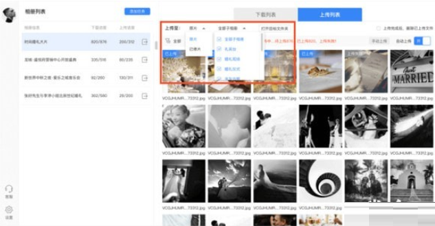 1、用户可自主选择上传目标位置,原片或是精修片;以及子相册(子相册可多选或全选)
