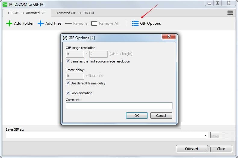 GIF最新版页面简洁直观,操作易上手,不仅支持DICOM图像和GIF动图的相互转换,还支持RAW,JPEG,JPEG
