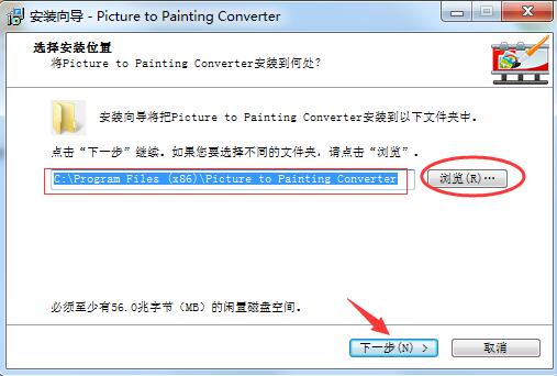 4.选择开始菜单文件夹,默认文件夹为“Picture to Painting Converter”,点击【浏览】按钮可另行选择,之后点击【下一步】