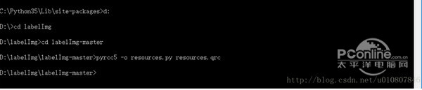 由于lxml文件很小,一般可以安装成功,不行的话,同上述方法,下载whl文件再pip安装。 6、pyrcc编译资源文件 进入到labelimg工具解压后的文件,我这里是labelImg-master. 执行命令: pyrcc5 -o resources.py resources.qrc , 如下图