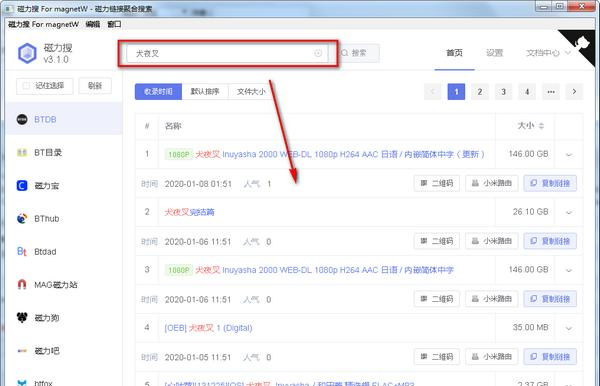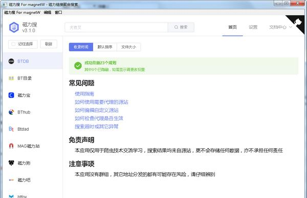 磁力搜是一款非常好用的集合体磁力 搜索软件,通过磁力搜用户能够有效的搜索到自己需要的任何一个电影电视或者软件资源,当然,磁力搜不提供下载功能,还得用户自己去打开迅雷或者其他的下载软件进行下载使用。  基本简介 搜索基本没问题的,可扫二维码或复制地址,有时提示time out即时间超时的话可以通过切换站源或在菜单栏里打开清理缓存来解决,可能会没有库源要设置的,带有未知的bug,有兴趣可自行折腾下,个人感觉只要换站点就可以了。 功能介绍 1.支持多个搜索引擎同时搜索,要搜索资源,先添加搜索引擎,可以多次添加同一个引擎搜索不同的关键字 2.对于搜索到的结果支持筛选,排序,查毁方投圆拼音:huǐ fāng tóu yuán释义:比喻抛弃立身行事准则,曲意投合别人。出处:无示例:无看,复制,删除,保存到文件,从文件读取等功能 使用方法 一、下载安装软件。  软件截图2 二、打开软件,在搜索栏中搜索自己要下载资源名字,点击搜索就有了。  软件截图3 三、点击复制链接,然后到下载软件中打开下载即可。 永遇乐 刘辰翁去时里正与裹头,归来头白还戍边!磁力搜(magnetw),磁力搜(magnetw)下载,下载工具,网络工具Too much emphasis placed on (attention paid to / importance attached to) … may obscure (overlook / neglect) other facts… |