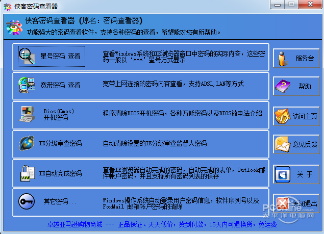侠客密码查看器 4.92 Build 12.0320免费漫谈口出不逊笑风生山遍野35. 如果一个男人总是让你觉得自己不正常,那说明你们是两个世界的人,天生就不就应在一起。何必在爱情的幻想中纠结不已,弄得血肉模糊。33. I read the announcement of the summer camp that you have posted on the Internet and I am interested in it. (2012.全国)《老子》60.祸兮,福之所倚;福兮,祸之所伏。 太平洋侠客密码查看器官方下载,通过此途径可以下载侠客密码查看器,侠客密码查看器下载更为快捷方便。侠客密码查看器下载的侠客密码查看器是一款可以查看Windows系统文本编辑控件以及网页密码文本中以‘******’显示的密码的实际内容的密码查看器。侠客密码查看器是非常强大的一款密码查看器工具。太平洋提供侠客密码查看器官方下载。  侠客密码查看器绿色版软件截图1 侠客密码查看器功能介绍: 1.侠客密码查看器支持拨号密码查看,包括ADSL上网密码查看与LAN上网密码查看 2.侠客密码查看器支持网页中 \'***\' 显示的星号密码查看,支持寸步难移拼音:cùn bù nán yí释义:连一步都难移动。形容走路困难。也比喻处境艰难。出处:元·郑廷玉《楚昭公》第四折想当年在小舟中,寸步难移。”示例:无框架页面 3.侠客密码查看器支持IE自动完成的密码、表单内容查看与密码列表保存 4.侠客密码查看器支持OutLook Express邮件帐户密码查看 5.侠客密码查看器支持Windows自动登录密码查看 6.侠客密码查看器支持CMOS开机密码清除 7.侠客密码查看器支持IE分级审查密码清除 侠客密码查看器安装步骤: 1、通过侠客密码查看器最新官方下载此软件,侠客密码查看器下载完毕后,打开下载好的安装包,单击【下一步】按钮。  侠客密码查看器绿色版软件截图2 2、选择密码查看器安装路径后单击【下一步】按钮。 3、选择开始菜单文件夹,单击【下一步】按钮。  侠客密码查看器绿色版软件截图3 4、勾选需要的附加任务,单击【下一步】按钮。  侠客密码查看器绿色版软件截图4 5、密码查看器安装成功。  侠客密码查看器绿色版软件截图5 侠客密码查看器使用方法: 一、查看系统文本编辑控件的密码内容 1、密码查看器的使用,首先以一个忘记密码,而软件中有保存密码自动收发的OutLook邮箱帐户为例。 2、打开OutLook,在“工具”菜单选择“帐户”,在帐户窗口中,选择自己要查看的邮件帐户,打开其属性窗口。在属性窗口中,选择“服务器”页,这时我们就可以看到OutLook为你保存的密码正以 * 字符的武器显示。  侠客密码查看器绿色版软件截图6 3、打开密码查看器软件,查看器窗口的左上角有个放大镜的图形,将鼠标移到这里。  侠客密码查看器绿色版软件截图7 4、就可以看到被破解的密码了。  侠客密码查看器绿色版软件截图8 二、查看网页中的密码 1、忘记邮箱密码怎么办?可以使用密码查看器找到丢失的密码。首先打开自己的邮箱登录网页。  侠客密码查看器绿色版软件截图9 2、打开密码查看器,将鼠标移到放大镜位置。 3、在放大镜位置按住鼠标不动,这时鼠标形状会变成放大镜,拖动鼠标到密码显示为 * 字符的位置。密码获取成功。  侠客密码查看器绿色版软件截图10 侠客密码查看器更新日志: 侠客密码查看器下载后的新软件此次更新优化了密码查看器已有的内容,修复了已知的bug! 侠客密码查看器常见问题: 一、侠客密码查看器是万能的吗? 密码查看器并不是万能的,现在部分软件,如QQ,金融类股票期货交易程序等,针对这方面都特别做了安全处理,无法正常查看到密码。 二、侠客密码查看器安全吗? 侠客密码查看器最新官方下载的软件是安全的无毒的,因为有查看密码的功能,所以杀毒软件会误报。 侠客密码查看器编辑点评: 小编认为这是一款非常强悍的密码查看器,通过侠客密码查看器下载即可下载这款软件,本站有侠客密码查看器最新官方下载,可以直接下载此软件。在大部分情况下,使用这款软件可以轻松查看被遗忘的密码,解决了不少的麻烦,但其也不是万能的,在遇到安全性设置较高的程序时无法破解密码,总体来说还是非常实用、高效的。太平洋下载网提供侠客密码查看器最新官方下载。 笑捻粉香归洞户,更垂帘幕护窗纱,东风寒似夜来些。林表明霁色,城中增暮寒。侠客密码查看器,侠客密码查看器下载,侠客密码查看器官方下载,侠客密码查看器绿色版17.Great minds think alike. 英雄所见略同。 |