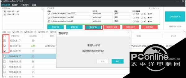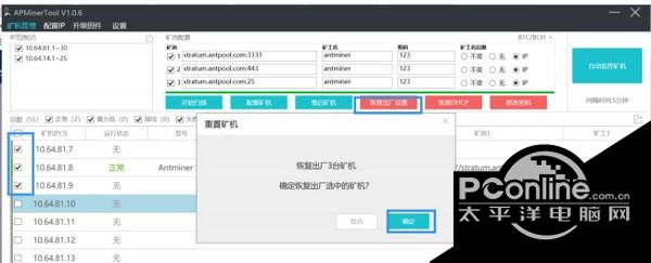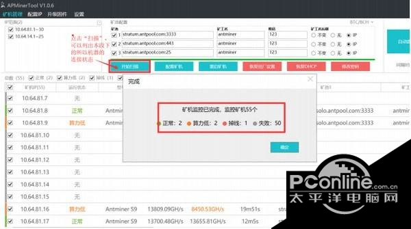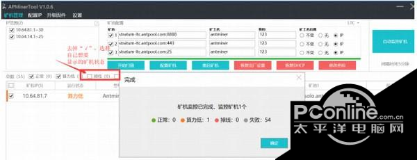 蚂蚁矿机监控软件(APMinerTool) 1.08 官方版免费火树情同手盲人摸象足银花40. 在人生中,有时最好走的路不必须是大路,而是小路;在现实中,有时最便捷的路不必须是直路,而是折路。14. If there is anything that I can help you, please don’t hesitate to tell me.(2017.全国Ⅰ卷)133.天苍苍,野茫茫,风吹草地见牛羊。《敕勒歌》 APMinerTool是一款矿场智能监控软件, 可以同时扫描局域网多个IP段矿机,而且可以批量监控矿机的运行状态,有报警设置,自定义IP范围等,有需要的朋友可以下载使用。  功能介绍 批量监控矿机运行状态 批量配置矿工 批量升级固件 批量重启, 支持同时扫描局域网多个IP段矿机 使用方法 一、 设置固定 IP(如果已经找到配置了矿机的 ip。请跳过此步骤) 设置固定 ip 时软件与矿机需要保持在同一网段 1、双击打开软件  软件截图2 矿机正常连接网络和电源后,矿机设置时获取的 IP 都是 DHCP 模式,IP 地址不是固定的,如果机器多,为方便管理,批量管理软件可以批量进行设置固定 IP 地址; 正常路由器一个网段是 1-254,在同一个网段下设置静态 ip,现如果要从 1 开始设置矿机的静态 ip,为了避免 ip 冲突,建议先设置路由器分配 DHCP 模式从 100 开始; 举例:路由器分配 DHCP 模式:101-254 设置静态 ip:1-100 方法: 2、可在“下一个填充 ip”选择要修改的静态 ip,  软件截图3 3、“子网掩码”,“网关”,“DNS”,需要在电脑网络共享中心查看,并填写正确  软件截图4 4、 “自动配置”,建议把自动配置勾选上,这样就可以自动配置要配置的矿机,如果不勾垂涎欲滴拼音:chuí xián yù dī释义:涎口水。馋得连口水都要滴下来了。形容十分贪婪的样子。出处:唐·柳宗元《招海贾文》垂涎闪舌兮,挥霍旁午。”示例:但是在我这样的一个穷小子看来,确觉得 这是一个不小的数目,而且老实说,确也有些~!★邹韬奋《经历·贫民窟里的报馆》选,就需要手动在“下一个填充 ip”输入要设置的静态 ip,自动配置更方便;  软件截图5 5、 完成以上操作后,点击“开始监听”,然后逐一按下矿机上的“IP report”按钮 3-5 秒钟,就可以开始逐一分配,分配完成之后,点击“配置矿机”即可。静态 ip 就配置完成了;  软件截图6 二、矿机监控管理 1、软件检测 ip 段内的机器 A:选择矿机管理,显示矿机管理界面 B:编辑 ip 段选择界面 C:点击“+”,获取矿机的 ip 段 D、E、F:ip 段双击可进行 ip 段修改 点击保存即可!  软件截图7 2、扫描检测矿机(扫到的为均已配置好的矿机) 整个段扫完之后会弹窗提示(正常,算力低,掉线,失败)各个状态的机器的数量  软件截图8 可以根据自己的需要,选择自己想要显示的状态,如果不想要显示某个状态,只需要把“√”去掉即可。  软件截图9 3、配置矿机 A:切换币种,切换后软件自动填充挖矿服务地址,也可自行修改,(币种切换要在没有开启监控或者停止监控时进行切换) B:选择想要配置的对应币种的矿机,可以更换服务地址,矿工名等 C:点击配置矿机,会对选中的币种进行配置,配置好之后会提示配置成功,,其他的机器会提示配置失败;  软件截图10 矿工名后缀,,可以在“矿工名后缀”选项中自行修改,目前默认的就是矿工名后缀跟 ip 段一致。 修改确认后点击“配置矿机”,会自动配置,配置完成会有弹框提示配置成功和失败的数量;而后点击“自动监控矿机”即可; 4、 重启矿机 如果某台矿机需要重启,可以勾选中这台矿机,然后点击重启矿机,即出现提示弹框,点击确认即可;  软件截图11 5、恢复出厂设置 如果某台矿机需要恢复出厂设置,可以勾选中这台矿机,然后点击重启矿机,即出现提示弹框,点击确认即可;  软件截图12 6、恢复 DHCP 模式 如果矿机已经设置的了静态 ip,现需要恢复成自动获取的 DHCP 模式,可以选择要恢复的机器,点击“恢复 DHCP”,再点击确定即可。 洞仙歌 苏轼朝避猛虎,夕避长蛇。蚂蚁矿机监控软件(APMinerTool),蚂蚁矿机监控软件(APMinerTool)下载,网络监测,网络工具55、All time is no time when it is past. |