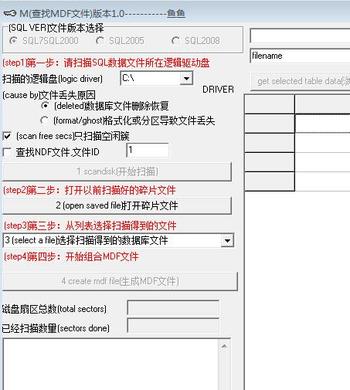 一般情况下,SQL数据文件大且在磁盘上不连续存放,这是很多一般的数据恢复软件恢复的MDF文件无法附加的原因。该MDFfind是一款SQLSERver数据文件删除恢复的专用工具,它从磁盘扫描删除的SQL数据文件碎片,并把它们组合3. 那些终将过下去的日子,叫做余生。而与你有关的日子,才是未来。成一个完整的MDF 。使用时请按操作手册说明使用。