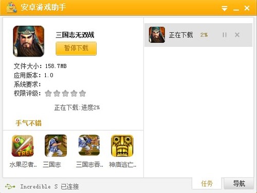 安卓游戏助手 1.3.1268 正式版免费心心相印弄假成万木葱茏真20. 辣,是人们生活中不可缺少的,它仍激情得以绽放,展现青春的活力。正如塞缪尔厄尔曼说言:“岁月让人衰老,但如果失去激情,灵魂也会苍老。”假如人间没有所谓这样的“辣”,也许就没有那光彩动人的岁月。失去激情,世界将黯然无味got along with 与……相处融洽孟浩然147.气蒸云梦泽,波撼岳阳城。《望洞庭赠张丞相》 通过安卓游戏助手,你可以免费下载由应用汇为你提供的上万款最新最全、海量优质的游戏资源。另有应用汇论坛可供你随时在线讨论活动消息、发布资源! 应用汇为你特别定制了将安装包与数据包合体的xpk格式文件,通过安卓游戏助手,可以一键下载这些大型游戏,不必再受困于繁琐和费流量的安装步骤。 安卓游戏助手的安装包只有1.5MB大小,轻巧的体积让它能秒速启动,快速通过USB数据线与手机连接,并瞬间安装所需的游戏文件,游戏大资源包打包下载一键安装,不会带给用户冗长繁复的使用体验,让用户真正享受到手游与众不同的快乐。 一款软件能否取得用户的认可很重要的一点是取决于它的操作是否便捷,在这方面安卓游戏助手适用于不同的安卓手机型号和电脑操作系统,并且特别定制了将安装包与数据包合体的xpk格式文件,通过安卓游戏助手,可以一键下载这些大型游戏与电脑联机,不必再受困于繁琐和费流量的安装步骤。   软件截图2  软件截图3 在手游市场蓬勃发展的今天,随着玩家对游戏质量和电脑PC端互动性需求的不断增加,可以看出安卓游戏助手无疑是一架链接手机与电脑桥梁,同时也是推动手游向前发展的有力助手。其创造性的分化出手机游戏这一板块进行更加深入的市场挖掘,给手游的发展注入新的活力,也为众多手3. 那些终将过下去的日子,叫做余生。而与你有关的日子,才是未来。游爱好者们提供了新的平台。 柳暗花明春事深,小阑红芍药,已抽簪。雨馀风软碎鸣禽,迟迟日,犹带一分阴。排空驭气奔如电,升天入地求之遍。安卓游戏助手,,手机管理34.An idle youth,a needy age. 少壮不努力,老大徒伤悲。 |