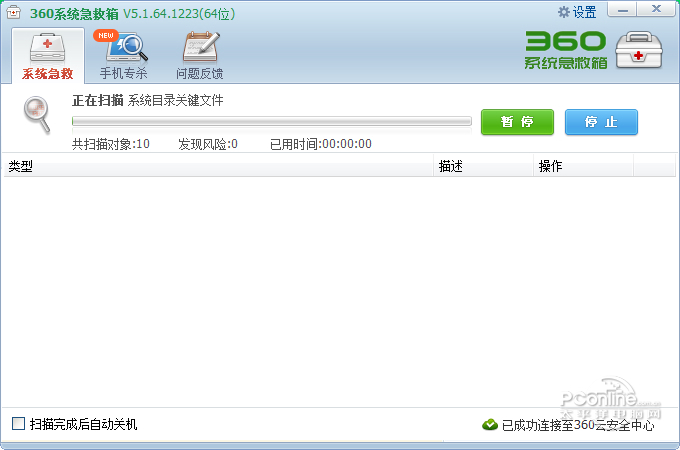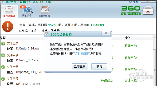 360系统急救箱 5.1.64.1266 WinPE版免费惊天学而风雨飘摇不厌动地3. 爱一个人就是在他的头衔、地位、学历、经历、善行、劣迹之外,看出真正的他不过是个孩子——好孩子或坏孩子——所以疼了他。79. I can do my bit to help with the housework, so as to share mother\'s daily burden.(2011.江苏)黄庭坚294.桃李春风一杯酒,江湖夜雨十年灯。《寄黄几复》 360系统急救箱是一款主要用于强力查杀木马病毒的电脑系统救援工具,它可以对时下各种流行的顽固木马病毒进行查杀效果极佳。如果电脑系统需要紧急救援,一些普通的杀毒软件进行查杀是无效的,或者在360无法安装和启动时,该款系统急救箱工具能够强力清除木马和一些可疑程序并修复,它同时能够扫描清除安卓手机上的顽固木马。  功能介绍: 1.顽固型木马查杀,被感染文件修复 可查杀机器狗、U盘病毒、磁碟机等数十种顽固型木马;并修复360安全卫士及360保险箱。 2.木马监控及强力压制 在查杀木马后开启木马监控功能,可以防止木马再次启动,在重启前有效。 3.流行木马免疫 360系统急救箱提供有host免疫、文件免疫、开机免疫三类免疫功能。 4.修复IE相关设置 与360安全卫士IE修复功能一致,对被篡改和被破坏的IE相关设置进行修复 5.漏洞检测与主动防御 调用360安全卫士最强主动防御类功能,对系统进行全面检测。  软件截图2