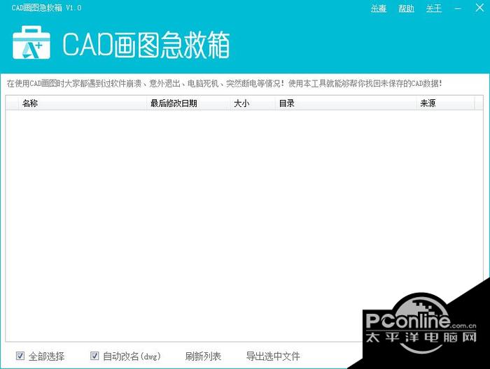 CAD画图急救箱 1.0 官方版免费九牛一风雨锦上添花同舟毛21. 亲情不仅是孟郊的“慈母手中线,游子身上衣”的长长牵挂,它也是王维“独在异乡为异客,每逢佳节倍思亲”的深沉感叹,是苏轼“但愿人长久,千里共婵娟”的美好祝愿,是辛弃疾“最喜小儿无赖,溪头卧剥莲蓬”的天伦之乐……2. The harder you work at it, the more progress you will make.244.嫦娥应悔偷灵药,碧海青天夜夜心。《嫦娥》 CAD画图急救箱是CAD图形频道下深受用户的软件,太平洋下载中心提供CAD画图急救箱官方下载。 CAD画图急救箱官方版是一款CAD文件 修复工具,用户在使用Auto CAD软件时如果出现意外情况,导致图纸丢失,那么就可以使用CAD画图急救箱来进行紧急修复,CAD画图急救箱最新版软件可以帮助用户找回之前未保存的CAD数据。 CAD画图急救箱基本简介 CAD画图急救箱是一款Auto CAD辅助软件,相信大家在使用Auto CAD画图时,都遇到过软件崩溃、意外退出、电脑死机、突然断电等情况!辛辛苦苦画了半天的图还没保存就退出了,很多人被迫只能选择重新画图;现在不用再重新画图了,遇到软件崩溃、断电、意外闪退等情况时,只要使用CAD画图急救箱,就能够帮你找回闪退之前未保存的CAD数据! CAD画图急救箱安装步骤 1.在太平洋软件园下载CAD画图急救箱官方版的安装包  2.下载后,将压缩包解压到以此软件命名的文件夹内  3.打开文件夹,双击“exe”程序  4.CAD画图急救箱为绿色软件,无需安装即可使用  CAD画图急救箱更新日志 1:优化了性能 2:解决bug问题我们是认真的