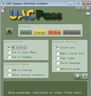 UAC Pass(一键关闭UAC) 1.8.0.0 官方版免费若隐指鹿为马若现嬉皮笑脸19. 身在红尘,错过多少缘分如流,看过多少聚散随风,到最后都成一场无法圆满的修行,归于清寂。染香岁月的文字,清远,绵长。喜欢这种素雅清新的感觉,浅浅的云,微微的风,垂眸一朵花的艳,轻嗅细细的香。还有什么比着春天的味道更美,更香!make full preparations:做充分准备394.雄关漫道真如铁,而今迈步从头越。《忆秦娥?娄山关》 UAC Pass(一键关闭UAC)是一款帮助用户关闭UAC弹窗的软件,当用户运行一些高权限程序时总是会弹出UAC窗口,使用UAC Pass就能够解决这个问题,有需要的可以下载使用。  功能介绍 在运行需要高权限的程序时,会弹出UAC确认窗口,当无法确认程序的安全性时可以点否及时阻止运行。有些程序我们是确认安全的,而每次运行都会弹窗就显得很繁琐。 UAC弹窗UAC Pass是一个免费开源的小工具,它利用任务计划帮我们快速创建程序快捷方式,通过这个快捷方式运行的程序不会弹出UAC提示窗口。 使用方法 使用方法很简单,勾选好选项后,将会弹出UAC的程序或其快捷方式拖放到下边的框内即可。  软件截图2 勾选了My Desktop的话,它会将创建的新的快捷方式放置到桌面。如果需要程序开机运行,可以勾选下面的Add to startup。  软件截图3 在UAC Pass中完成选项设置并保存后,点击保存按钮右边的快捷方式按钮,可以为UAC Pass创建一个快捷方式。打开这个快捷方式,可以直接选择程序,并按设置好的选项为程序创建快捷方式。  软件截图4 为UAC Pass创建快捷方式还有另外一个更快速的方法,打开运行,输入 shell:sendto 打开“发送到”文件夹,或者打开目录%appdata%\\Microsoft\\Windows\\SendTo,将UAC Pass的快捷方式放到这个目录。 将UAC Pass快捷方式放到发送到目录以后再为程序创建无UAC弹窗的快捷方式,只需右键点击它,选择 发送到 - UAC Pass 即可。  软件截图5 如果需要删除它创建的任务计划,可以打开任务计划程序手动删除,也可以在程序中点击按钮删除。 垂首丧气拼音:chuí shǒu sàng qì释义:形容因失败或不顺利而情绪低落、萎蘼不振的样子。同垂头丧气”。出处:《水浒传》第九五回乔道清生平逞弄神通,今日垂首丧气,正是总教掬尽三江水,难洗今朝一面羞。”示例:[舟次]连不得志于有司,~,无以娱其老亲。★清·周亮工《送汪舟次游庐山序》 次韵林圣予《惜春》忽逢青鸟使,邀入赤松家。UAC,Pass(一键关闭UAC),UAC,Pass(一键关闭UAC)下载,其它工具,应用工具1、Give everyone his due. |
