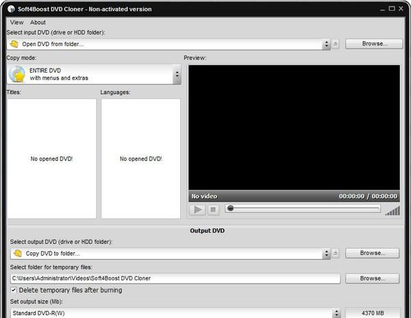 Soft4Boost DVD Cloner 7.4.5.839 官方版免费一应一日风调雨顺千里俱全13. 文学家写散文,正规的散文,语言纯正的散文;如果散文缺乏趣味的调料、没有快活的企图、讽刺、傲慢和幽默,那就一钱不值。95. I’d like to invite you to join us for a visit to the nearby nursing home next Saturday for the Double Ninth Festival.(2015.全国)157.草枯鹰眼疾,雪尽马蹄轻。《观猎》 Soft4Boost DVD Cloner是一款简单实用的光盘刻录软件,能够帮户用户更好地拷贝DVD/CD,用户可以通过Soft4Boost DVD Cloner从电脑硬盘上的文件夹中复制并刻录一张DVD光盘,十分实用。  基本简介 Soft4Boost DVD Cloner是一个简单易用的软件,它允许你拷贝DVD/CD和为家庭播放器制作DVD光盘。支持CD-R/RW、DVD+/-R、DVD+/-RW、DVD-RAM、双层/双层DVD。 功能介绍 支持CD-R/RW、DVD+/-R、DVD+/-RW、DVD-RAM、双层/双层DVD。 从电脑硬盘上的个人DVD光盘或DVD文件夹中复制并刻录一张DVD光盘。 选择要复制的内容:只复制视频或整个个人DVD以及菜单。选择您想要复制的标题和语言。 18. 当眼泪流下来,才知道,分开也是另一种明白。自动设置最佳的视频和音频设置,并压缩光盘,以适应光盘 支持多种语言,如英语、德语、俄语、法语、西班牙语、意大利语、匈牙利语、丹麦语和土耳其语。 使用方法 Soft4Boost DVD Cloner用于复制视频光盘,并重新压缩记录在双层介质上的视频光盘,以适应单层光盘。 1)选择源和目标DVD驱动器(或硬盘驱动器文件夹,如果您的计算机硬盘上有您的DVD视频)。您可能还需要为临时文件选择文件夹。如果您复制只有一个光盘驱动器的光盘,将在您的计算机硬盘驱动器上创建一个临时图像,让您使用相同的光盘驱动器来录制生成的光盘。在这种情况下,请确保您有足够的可用硬盘空间用于创建临时光盘映像。对于双层DVD来说,其大小可能高达9gb。您还应该在适当的框中设置目标光盘大小。 2)选择复制模式。您可以复制带有所有菜单和附加内容的整个DVD,或者复制保留其结构和菜单但删除所有附加内容的DVD,或者只复制主电影,或者选择用户定义模式,并从生成的DVD中包括和排除任何标题和语言。 3)选择必要的语言和音频流,并删除不需要或不需要的语言和音频流。这可以提高输出视频的质量。 4)使用预览区域预览必要的标题。 注意:您可以使用全屏选项预览视频;单击全屏按钮(当您将鼠标光标悬停在预览区域上时会出现),或者在预览区域内双击。再次双击它以返回正常视图。 5)选择所有设置后,按开始复制!按钮开始DVD复制过程。它的进度将显示在进度条上: 料为我厌厌,日高慵起,账托春醒未醒。雁足不来,马蹄难驻,门掩一庭芳景。空伫立,尽日阑干,倚遍昼长人静。明眸皓齿今何在?血污游魂归不得!Soft4Boost,DVD,Cloner,Soft4Boost,DVD,Cloner下载,光盘刻录,应用工具37、Bad luck often brings good luck. |