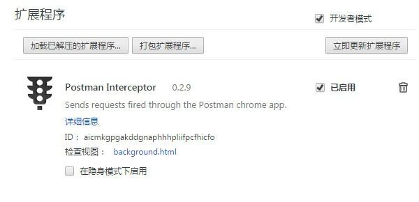 postman interceptor chrome 0.2.9 官方版免费姹紫嫣红俯拾皆孤云野鹤市46. 几颗大而亮的星星挂在夜空,仿佛是天上的人儿提着灯笼在巡视那浩瀚的太空。星空倒映在这汹涌的海面上,便随波上下跳舞,时现时灭。最早出现的启明星,在这深蓝色的天幕上闪烁起来了。它是那么大,那么亮,整个广漠的天幕上只有它一个在那里放射着令人注目的光辉,像一盏悬挂在高空的明灯。33. 对…有益 be beneficial / conducive to…6. 高山仰止,景行行止。 postman interceptor chrome是一款安装在谷歌浏览器上使用的chrome postman interceptor插件,这款postman&postman interc毁形灭性拼音:huǐ xíng miè xìng释义:损坏形体,消灭本性。出处:无示例:无eptor插件可以帮助开发人员进行网页调试http测试。  基本简介 Postman是一款功能强大的网页调试与发送网页HTTP请求的Chrome插件。用户在开发或者调试网络程序或者是网页B/S模式的程序的时候是需要一些方法来跟踪网页请求的,用户可以使用一些网络的监视工具比如著名的Firebug等网页调试工具。尽管Postman已经非常强大了,但是还是有一些功能由于chrome的一些限制原因无法实现,例如自定义HTTP Header,对HTTP的请求进行过滤。于是就产生了一款新的chrome插件 Postman Interceptor 功能介绍 1.记录浏览器请求并直接导入到Postman 2.可添加Filter,对浏览器中的请求进行过滤 使用方法 1.在Postman工具中打开postman Intercepter功能 2. 如果只需要测试特定网站,可以在 postman interceptor插件中设置 Filter requests。 Filter requests默认是“.*”,表示捕获所有的网站。如果只想要捕获百度,可以在Filter requests里输入“baidu”。 3. 在chrome中进行操作,比如打开百度,然后搜索关键字“hello”,然后点击“百度一下”。 4. 打开 postman interceptor。可以看到 “last 10 requests“。 5. 打开Postman,可以看到“History”显示chrome中进行的操作。 6. 然后就可以在Postman对 request进行修改,过滤,以及编写测试。 Postman Interceptor,可以让postman中发送请求的时候使用这个网站的浏览器cookie。发送请求的时候带上了自己的cookie,如果在尝试获取数据时不能访问,可以考虑Postman Interceptor。 安装方法 方法一:.crx文件格式插件安装 1.首先用户点击谷歌浏览器右上角的自定义及控制按钮,在下拉框中选择设置。 2.在打开的谷歌浏览器的扩展管理器最左侧选择扩展程序。 3.找到自己已经下载好的Chrome离线安装文件xxx.crx,然后将其从资源管理器中拖动到Chrome的扩展管理界面中,这时候用户会发现在扩展管理器的中央部分中会多出一个”拖动以安装“的插件按钮。 4.松开鼠标就可以把当前正在拖动的插件安装到谷歌浏览器中去,但是谷歌考虑用户的安全隐私,在用户松开鼠标后还会给予用户一个确认安装的提示。 5.用户这时候只需要点击添加按钮就可以把该离线Chrome插件安装到谷歌浏览器中去,安装成功以后该插件会立即显示在浏览器右上角(如果有插件按钮的话),如果没有插件按钮的话,用户还可以通过Chrome扩展管理器找到已经安装的插件。 方法二:文件夹格式插件安装 1.首先用户点击谷歌浏览器右上角的自定义及控制按钮,在下拉框中选择设置。 2.在打开的谷歌浏览器的扩展管理器最左侧选择扩展程序。 3.勾选开发者模式,点击加载已解压的扩展程序,将文件夹选择即可安装插件。 曲阑干外天如水,昨夜还曾倚。初将明月比佳期,长向月圆时候、望人归。五月西施采,人看隘若耶。postman,interceptor,chrome,postman,interceptor,chrome下载,外观插件,网络工具29.Its not the gay coat that makes the gentleman. 君子在德不在衣。 |