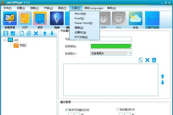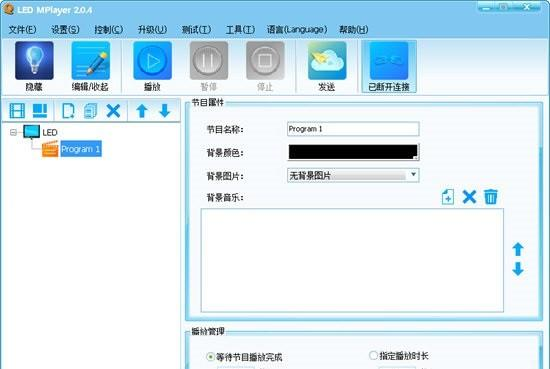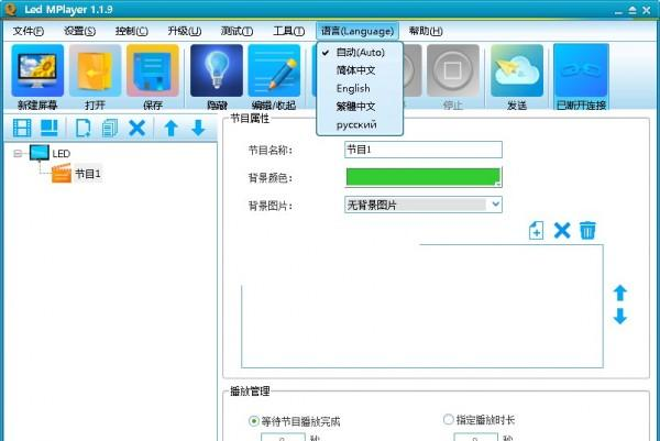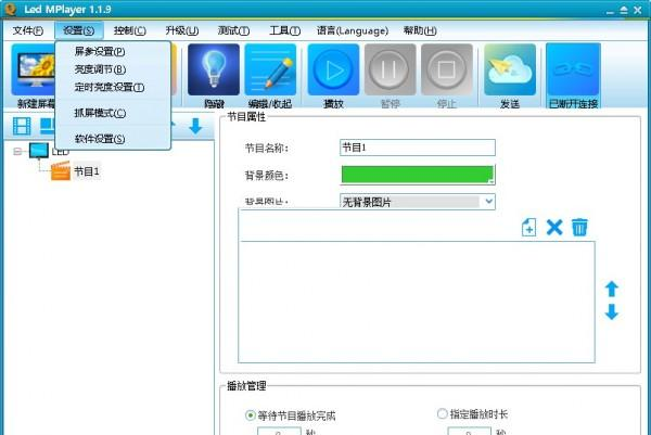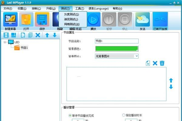 LED MPlayer(LED屏幕控制软件) 2.0.4 官方版免费眉顶天立地飞色一视同仁舞3. 美,是有系统的,慎重谨敬的、有脉络有缘故的,丑却草率邋遢,自暴自弃。虽然有时美伪装得像后者,但其实不然,美的大自在来自“从心所欲不逾矩”的素养,而非邋遢。如今,老师和家长都对学生上网现象极为担心。17.物以类聚,人以群分。 LED MPlayer是一款LED屏幕控制软件,支持同异步双模控制功能,还可以控制屏幕的显示内容,显示特效,显示时间等,LED MPlayer是一款很不错的LED屏幕控制工具。  功能介绍 LED MPlayer为用户提供了同异步双模功能。 屏参设置,能够支持对LED显示屏的显示器名称、控制器型号、硬件设置等参数进行全面的设置。 固件升级,支持用户一键升级固件。 强大的LED显示屏测试功能,支持灰度测试、渐变测试、网格测试等多种测试功能。 亮度调节,支持对LED显示进行亮度调整。 定时亮度设置,用户可以设置定时亮度。 节目属性设置,哟门户可以对界面名称、背景颜色、背景图片、背景音乐等进行设置。 软件特色 播放管理,提供了等待节目播放完成时长设置、指定播放时长等管理操作。 支持显示与隐藏两种模式,用户快速显示或隐藏。 支持视频缩放功能,用户了可以对视频进行缩放操作。 多语言支持,LED MPlayer支持简体中文在内的多种语言。 LED MPlayer为用户提供了抓屏模式。 视频播放效果支持速度优先、画质优先两种播放效果。 支持发送节目背景图片。 支持软件启动最小化、启动隐藏播放窗等操作。 添加区域支持单行文本窗、多行文本窗、文件窗、时钟窗。 使用方法 1、双击桌面上的L8. 我要开个小卖部,把零食都送给幼儿园的小朋友。ED MPlayer运行软件,进入如下的操作界面,用户可以对LED的界面属性进行设置,用户可以设置节目名称、背景颜色、背景图片、背景音乐等参数。  软件截图2 2、设置,在设置一栏中提供了屏参设置、亮度调节、定时亮度设置、抓屏模式等操作设置功能。  软件截图3 3、控制,在控制一栏中用户可以进行播放、暂停、停止等操作。 4、升级,在升级功能中提供了【固件升级】,用户可以一键升级固件。  软件截图4 5、测试,在测试一栏下提供了灰度测试、渐变测试、网格测试三种LED显示屏测试功能。  软件截图5 6、工具,在工具一栏提供了Word、Excel、画图、记事本等常用的工具。  软件截图6 7、点击次菜单栏上的语言(language)选项,支持简体中文等多种语言。  软件截图7 8、在功能栏上提供了新建屏幕、打开、保存、隐藏、编辑/收起、播放、发送等操作。  软件截图8