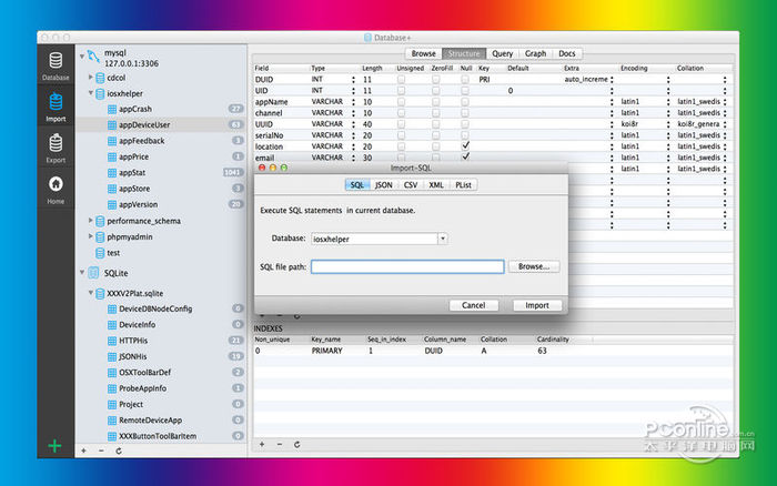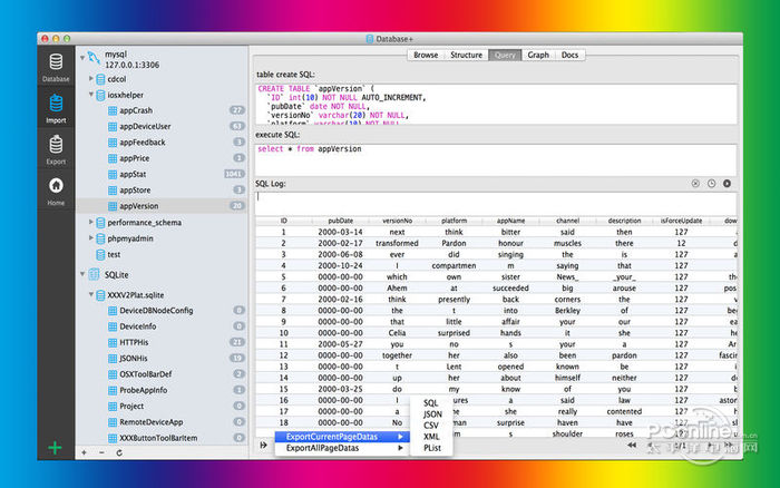 Database+ Mac版 1.5.2收费眼守株待兔高手低同甘共苦16. 指尖跳动,舞蹈在自我的世界,而心被风吹拂着,在微凉的红尘深处,一枚青苔滋生的记忆弥漫着。户外活动确实对我增强体质和丰富学校生活有益。陈子昂144.前不见古人,后不见来者。念天地之悠悠,独怆然而涕下。《登幽州台歌》 操作简单,功能强大的多语种客户端(MySQL,PostgreSQL,SQLite)工具,Database创建/管理,创建表,数据分页浏览,SQL查19. 我的心曾是一座孤岛,寸草不生,你来之后,花木繁盛。询,数据导入/导出(SQL,JSON,CSV,XML,plist中)。 产品特点: 1:数据库管理 打开所有的数据库在一个树形导航面板。创建/删除数据库,创建/删除表。 对于SQLite的数据库,拖动文件从Finder到左面板会自动打开。 2:表管理/查询 表中的数据插入/删除/ 浏览,测试数据自动生成。 SQL数据查询和查询结果导出。 3:数据导入/导出 支持SQL,JSON,CSV,XML,Plist格式的数据导入/导出。 4:文件图表生成 生成数据库表结构图,降价/ PDF/ PNG / HTML文件。 请发送电子邮件至iosxtools@gmail.com,如果您有任何问题或建议。  Database+ Mac版 截图1 Database+的新功能