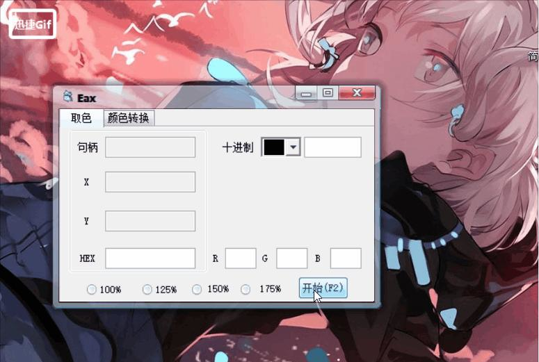 简易取Eax是一款取色小工具+颜色代码转换软件,采用易语言编写,目前遇到的问题就是屏幕缩放比例不一样的时候,坐标位置会偏移,可以用选项选比例然后再x坐标!  开发介绍 没开学在家好无聊,学了几天易语言,活学活用,给大家献献丑了,大佬们轻点喷 遇到的问题就是屏幕缩放比例不一样的时候,坐标位置会偏移,只能下面用选项让大家选比例然后再×坐标了。。 测试平台是Win10,Win7和WinXP用虚拟机都测试了一下。 使用说明 请先选择屏幕缩放比例,否则可能程序爱你色值偏移 除Win7不同其他比例是多少就选择多少! 查看本机屏幕缩放比例方法如下 Win10:桌面-右键-显示设置 Win7:桌面-屏幕分辩率-放大或缩小文本和其它项目 1、如果为125%请选择100% 2、如果为150%请选择125% Winxp:默认为100% 效果展示  软件截图2  软件截图3 31. 前天,牵挂你;昨天,思念你;今天,联系你;明天,想见你。总之,我的心天天系着你,只愿开心时时陪着你,快乐刻刻伴着你,幸福秒秒绕着你!