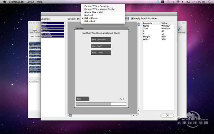| 介绍 | Illumination Software Creator Mac版 4.1收费滂沱大雨胡言乱语百鸟鸣春如果相信轮回,对缘分就不会感到奇怪。因为人与人之间的关系并非始于今生,还有许多前生带来的烙印。在过去生,有些曾是我们的亲朋故友,有些则是我们的冤家仇敌。当彼此在今生再度相遇,这种烙印就会复苏,并驱使我们将往昔的爱恨情仇继续演绎下去。花在教育锻炼上的时间是25分钟,只有12分钟的时间用来做家务。197.露从今夜白,月是故乡明。《月夜忆舍弟》 Illumination Software Creator allows anyone to create their own software applications… without writing a single line of “code”. It is more like drawing a flowchart, which the App turns into code. NOTE: a new update with even more visual improvements is due out Fall of 2014 The idea is simple: Arrange colorful building blocks of functionality however you like to create your own, unique, piece of software. No reading large computer programming books. No steep learning curve. One project creates apps for Android, iPhone, iPad, Linux, Windows Desktops, HTML5 websites and Flash websites. Illumination even gives you the full Adobe Flex, Android Java, iOS Obj-C, JavaScript and Python source code to the projects you create. This provides some major benefits: 1) Apps created with Illumination are 100% native. (iPhone apps are 100% Objective-C, etc.). 2) It\'s a great way to prototype new projects, or learn new languages. Tutorials (including instructions for preparing your Mac for building iOS, Android, etc. apps) and example projects can be found on the Support Page. There is a new version of this software due out soon. Help, Information and news on updates/upgrades, nocost software downloads, tutorials, videos and more are available on the Support Page. Requirements: - Building iOS (iPhone & iPad) apps requires XCode 3.2.6 or XCode 4 or above (all no cost from Apple). - Running iOS (iPhone & iPad) apps directly from the Illumination toolbar requires XCode 3.2.6 (not currently compatible with XCode 4). - Building and Running Flash/Flex Web apps requires Adobe Flex SDK - Building and Running Python/GTK apps requires PyGTK. - Building and Running Android (JAVA) apps requires the Androi杯弓市虎拼音:bēi gōng shì hǔ释义:指捕风捉影,疑虑重重,自相惊扰。参见杯弓蛇影”、三人成虎”。出处:詧眖《学界风潮记·天津商学界之活动》同时传来上海有罢市之说,以致杯弓市虎,危机伺伏,人心恐惶,险状万分。”示例:无d SDK and Eclipse. ![]() Illumination Software Creator Mac版 截图1 Illumination Software Creator的新功能 - Can now build HTML5 Web Applications! - The new Image Library lets you add and manage graphics in your apps easily. - Loads of fixes and usability improvements to make it even easier to build your own apps. ![]() Illumination Software Creator Mac版 截图2 ![]() 截图3 晚云收,淡天一片琉璃。烂银盘、来从海底,皓色千里澄辉。莹无尘、素娥淡伫,静可数、丹桂参差。玉露初零,金风未澶,一年无似此佳时。露坐久、疏萤时度,乌鹊正南飞。瑶台玲,阑干凭暖,欲下迟迟。山回路转不见君,雪上空留马行处。Illumination,Software,Creator,Illumination,Software,Creator,mac版,Illumination,Software,Creator,for,mac,软件开发工具However, just the opposite may be true under certain circumstances. |
