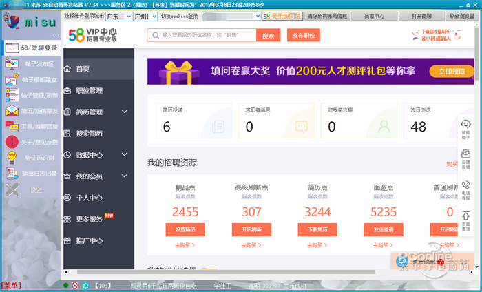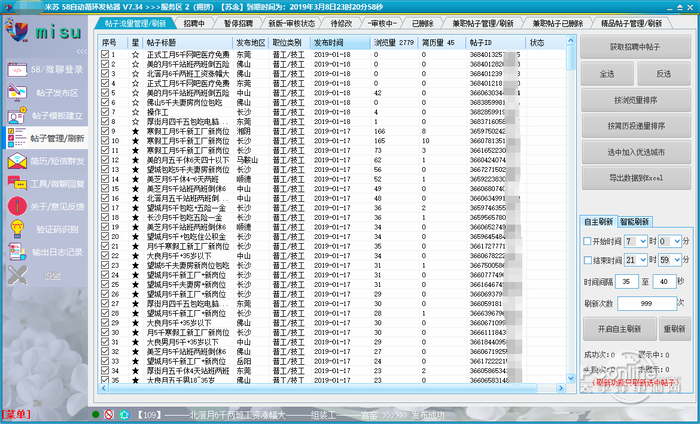 米苏 58自动发帖器 7.35 正式版免费喋喋不学而不厌休故弄玄虚40. 我慢慢走着,我走爱绿之上,我走在绿之间,我走在绿之下。绿在我里,我在绿里。79. I can do my bit to help with the housework, so as to share mother\'s daily burden.(2011.江苏)《孙子兵法》66.知己知彼,百战不殆。 58网灵通全自动发帖器,24小时循环删帖发帖, 一、【新添加多账号登记记忆功能,58账号只要登录过一次45. 你让世上所有情话都若有所指,你让我散落天涯的碎片都重新归集。的,下次可以直接一键登录】 二、【新添加三方面试邀请发送功能,超低资 费(8分/条起),一键发送面试邀请】 三、加入微聊自动回复,全天24小时不间断自动回复,大大提高引流工作效率【游客自动回复,访客自动回复,收藏帖子自动回复等】 四、无需看守,不吃电脑配置,所有电脑都带的动,不占内存,需要的朋友可以联系我索要试用天卡试用^-^ 五、添加兼职循环发帖功能 六、添加全职帖子刷新功能、兼职帖子刷新功能、精品帖子刷新功能 七、完善账号普通帖子管理、兼职帖子管理、精品帖子管理  软件截图   软件截图2  软件截图3  软件截图4  软件截图5  软件截图6  软件截图7  软件截图8  软件截图9 更新日志: 1、添加兼职循环发帖功能 2、添加全职帖子刷新功能、兼职帖子刷新功能、精品帖子刷新功能 3、完善账号普通帖子管理、兼职帖子管理、精品帖子管理 4、添加多服务区登录 5、升级兼容最新版58商家中心 满庭芳 秦观196刘长卿:长沙过贾谊宅米苏,58自动发帖器,微信营销29、Merry meet, merry part. |