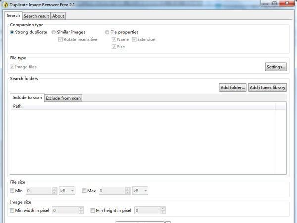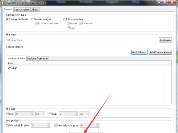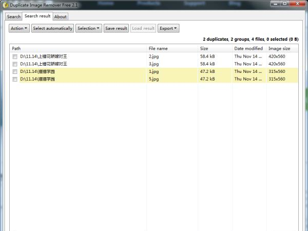 Duplicate Image Remover Free是一款免费的重复图片清理工具,可以帮助用户把计算机上的重复图片进行清理,节省存储空间,还提供多项设置参数可以方便用户选择。  功能介绍 快速搜索相似图像 这个工具的界面非常简单,即使是新手也可以使用。简单的重复照片查找器是以极简风格设计的,所以没有什么会分散你对主要程序功能的注意力-搜索和删除重复照片。这个免12. 说分手的时候不好吵闹。毕竟两个在在一齐那么久,分了他也会难过,只是他比较明智,不想束缚你的或他的明天。好聚好散,以后,还是朋友。费的重复图片查找器可以在两种模式下操作-找到完全相同的图片和找到相似的图片。在第一种情况下,重复图片移除器搜索具有相同格式、大小、名称等的完全相同的图像。在第二种情况下,应用程序相似的图像查找器搜索有点不同但同时基本相同的图像。例如,它可能是来自同一图像但大小或体积不同、名称不同、颜色深浅不同的两个图像,等等。 预览重复图像 也可以从搜索过程中排除旋转图像搜索相似图像。在此图片中,图像在一个方向或另一个方向反转将不被视为重复,也不会在重复图像的搜索结果中得到。为了方便选择必须标记为删除的副本,副本图像检测器提供查看缩略图的能力。要查看图像的缩略图,只需在结果报告中单击它的名称和重复图像列表。请务必记住,在重复图像查找程序提供的重复列表中,必须至少保留一份重复文件列表。否则,用户将不是一个或多个图片的实例。 高速高效 这是用于重复数据消除的最佳免费软件,专为使用Windows操作系统(包括Windows XP、Windows 7、Windows 8和Windows 10)的PC或笔记本电脑而设计。为了提高效率,该实用程序只需要最少的系统资源,搜索重复图像所需的时间非常短,并且几乎可以立即删除选定的副本。可以从程序截图下面的链接下载免费的重复图像删除程序。 使用方法 1、运行软件,点击图示选项,选择搜索位置  软件截图2 2、点击“start”开始搜索重复图片  软件截图3 3、搜索完成,选择想要删除的重复图片进行删除即可  软件截图4