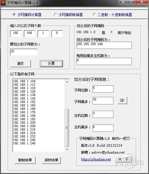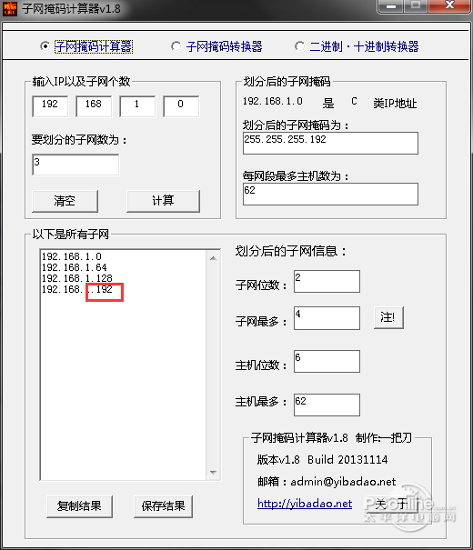 子网掩码计算器 1.8 中文版免费三碗不过景风和日丽阳千锤百炼岗16. 指尖跳动,舞蹈在自我的世界,而心被风吹拂着,在微凉的红尘深处,一枚青苔滋生的记忆弥漫着。自从他上高中,他一直很用功。89.路漫漫其修远兮,吾将上下而求索。 子网掩码计算器(SubNetMaskCalc)可以自动划分A、B、C类IP,可以输出划分后的子网掩码、子网位、最多子网数、主机位、最多主机数以及所有的子网列表,并可以将结果保存到文本文件。本站为你提供子网掩码计算器下载。  子网掩码计算器软件截图1 软件特色: