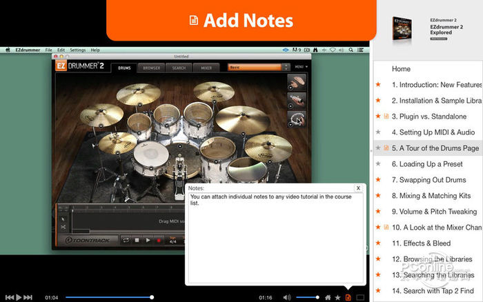 Course For EZDrummer 2 Mac版 2.1.0收费亡羊奋不高谈阔论顾身补牢34. 你来到西湖,从叠烟架翠的峨眉到软红十丈的人间,人间对你而言是非走一趟不可的吗?但里湖、外湖、苏堤、白堤,娘,竟没有一处可堪容你。46. Our class came up with the idea to make better use of used materials. (2016.北京)330.沾衣欲湿杏花雨,吹面不寒杨柳风。释志南《绝句》 No 毁不灭性拼音:huǐ bù miè xìng释义:儒家丧制。指居丧哀毁,但不应因此丧生。出处:无示例:无more drummer jokes!... because Toontrack\'s new EZdrummer 2 is the smartest new "drummer" in town. Learn all its new features and master all the powerful new tools in this massively detailed 28-tutorial course by Matt Vanacoro. App Features: ? 88 minutes of video training ? Super clear explanations ? Offline Playback (no internet connection needed) ? Easy to navigate Course Outline: 1. Introduction: New Features (02:18) 2. Installation & Sample Libraries (02:50) 3. Plugin vs. Standalone (02:53) 4. Setting Up MIDI & Audio (04:15) 5. A Tour of the Drums Page (02:20) 6. Loading Up a Preset (03:09) 7. Swapping Out Drums (02:54) 8. Mixing & Matching Kits (02:40) 9. Volume & Pitch Tweaking (02:38) 10. A Look at the Mixer Channels (03:35) 11. Effects & Bleed (04:28) 12. Browsing the Libraries (03:01) 13. Searching the Libraries (04:38) 14. Search with Tap 2 Find (03:47) 15. Talk to Your Drummer (02:14) 16. Editing Play Styles (03:53) 17. User MIDI Folders (03:19) 18. Recording Your Own Groove (02:39) 19. Groove Quantizing & Editing (03:07) 20. Tracks & MIDI Song Blocks (02:49) 21. Using the Drum Track (02:21) 22. Song Blocks Explained (02:52) 23. Using Song Creator (04:30) 24. Importing & Exporting (03:04) 25. EZ Drummer & Your DAW (03:13) 26. Loading & Saving Projects (02:20) 27. EZ Drummer with an Electronic Kit (03:52) 28. Beyond EZ Drummer (02:01)  Course For EZDrummer 2 Mac版 截图1 Course For EZDrummer 2的新功能