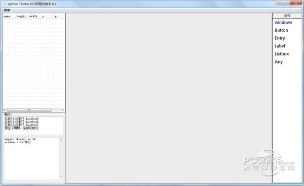 python Tkinter GUI可视化助手 0.2 正式版免费七鹤立鸡群彩桥横空手八脚26. 月虽清冷,却绝不缺乏浪漫情怀,予之繁花,就显得爱意浓浓,和之流水,就变得含情脉脉,花前月下,小桥流水,与知心之人比肩而行,密语甜言,相偎相依,是多温馨,多惹人陶醉的场景!因此,应该制定规则并严格遵守。314.等闲识得东风面,万紫千红总是春。《春日》 python Tkinter GUI可视化助手是编程工具频道下深受用户的软件,太平洋下载中心提供python Tkinter GUI可视化助手官方下载。 python Tkinter GUI可视化助手官方版是一款十分出色的可视化助手,python Tkinter GUI可视化助手官方版界面美观大方,功能强劲实用,能够帮助用户快速布局tkinter窗口大小,位置等。  python Tkinter GUI可视化助手 功能介绍 1、绿色免费、小巧实用、打开即用 2、python Tkinter GUI可视化助手官方版可以帮助你快速布局Tkinter的窗口大小,组件位置,并自动生成代码 3、布局窗口有点像易语言的风格,操作简单 4、自动生成代码,直接粘贴即可 5、助手只是生成简单的组件布局代码,组件事件等等其他代码需要自己有tkinter基础  python Tkinter GUI可视化助手 使用方法 1、使用开始先选择windows组件构建主窗口,当主窗口绘制完毕后,自动生成代码,直接粘贴即可。 2、创建完主窗口后,在主窗口内绘制其他组件,然后双击左侧列表框蔽聪塞明拼音:bì cōnɡ sè mínɡ释义:蔽遮;聪听觉灵敏;明香得清楚。掩住耳朵,挡住眼睛。比喻对客观事物不闻不问。出处:鲁迅《且介亭杂文·病后杂谈》二、是对于现实要‘蔽聪塞明’,麻木冷静,不受感触,先由努力,后成自然。”示例:无对应的组件自动生成布局代码,直接粘贴即可。 提示:本程序只是生成简单的组件布局代码,组件事件等等其他代码需要自己有tkinter基础,用户需要自行学习! 张绪归何暮?半零落依依,断桥鸥鹭。天涯倦旅,此时心事良苦。只愁重洒西州泪,问杜曲人家在否?恐翠袖天寒,犹倚梅花那树。320杜秋娘:金缕衣python,Tkinter,GUI可视化助手,python,Tkinter,GUI可视化助手下载,编程工具,编程开发72、Bread is the stall of life. |