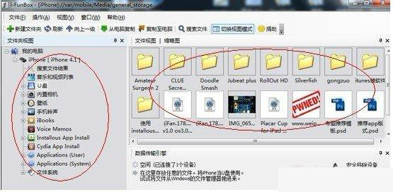 | 介绍 | iFunBox 4.0.4106.1352 官方正式版免费鹤守口夸夸其谈如瓶发童颜不是不想恋爱,而是不想随便的恋爱。最好的承诺,不是爱你一万年,而是根本不需要承诺。不是不想说,只是不知道该怎么说,能和谁说。有时候,发现自己一夜之间长大,却看不到自己的未来。(2)比较级+and+比较级(The world is getting smaller and smaller.)杂家250.醉卧沙场君莫笑,古来征战几人回?王翰《凉州词》 iFunBox是iPhone以及苹果其他产品的通用文件管理软件,使苹果的各类便携式设备得以共享文件和程序,为您轻松上传电影、音乐、电子书、桌面、照片以及各类应用软件。另外还有个极富特色的用途,即把你的iPhone变为一个U盘,可携带任何数据,需要iTunes支持。 本站提供的iFunBox为官方最新绿色简体中文版,无需安装,既可运行,全面支持ios 4系统(iPhone 4)。 ![]() 软件截图 功能特点: 从ipa包安装iOS应用程序 iFunbox可以安装用Apple企业开发者账号签名的in-house分发的ipa安装包, 也可用来安装尚在开发的归档ipa安装包。如果是越狱设备,甚至还可以安装你自己破解的ipa包。 导入导出多媒体文件 使用iFunbox的快速工具箱可以轻松管理设备中的视频,音乐,照片和手机铃声。 多个文件可以以批量的方式从文件选择框中选取,或者直接拖曳进来。 所有在照相机里面的视频和照片都是一键轻松导出,电影,音乐以及手机铃声也可以一样轻松完成 把iPhone当成一个U盘来用 在iFunbox的文件管理视图,左手边有一个叫"U盘"的文件夹可以支持存放任何类型和大小的文件, 如同一个隐身在iPhone里面的移动硬盘。她操作起来无异于普通的U盘但是传起文件来可快多了。 另外,iFunbox还完美地支持了中日韩文件名以及大于2GB的文件。 探索应用程序沙盒中的数据 iOS应用程序将程序产生的数据存储在其沙盒中,例如用户账号,聊天记录,游戏存档,应用内购买记录等。 iFunbox提供了简洁方便的界面让你任意操控这些数据。这样你可以清除程序的使用记录,备份聊天记录,游戏作弊 …… 彻底掌控iOS根文件系统 iFunbox帮你轻松深究一个越狱iOS设备的根文件系统,提供了快速浏览,即时文件预览以及快速文件搜索。 这样你可以自定义SpringBoard个性主题, 修改运营商图标, 清除系统垃圾文件, 配置系统服务以及诊断何种程序故障等, 基本上你可以再你自己的越狱设备上为所欲为。有了iFunbox做黑客就是这么简单。 iFunbox可以自动转换bplist和mac格式的png文件,这样文件预览就简单多了。 使用方法: 如果你电脑中还未有安装iFunBox软件,那么首先您需要下载并安装iFunBox,建议大家使用中文版。 ①电脑中下载并安装好了iFunBox软件后,我们首先打开该软件,并将iPhone手机通过数据线与电脑相连接,等待一会后,我们可以在iFunBox软件左侧看到树状型iPhone文件列别,至此说明3. 你们的恋爱不成功,全面的看,这是最好的结果。下意识里,你其实也希望有这样的结局。iPhone与iFunBox软件连接成功。如下图: ![]() ②如上图,在iFunBox软件界面左侧我们可以看到iPhone智能手机内部的各个文件树形图,这点与windows资源管理器,文件夹一样,之后我们可以通过简单的拖拽操作来复制文件与加入相关文件等。 ![]() 软件截图2 ③如上图,由于有了清晰的目录关系,因此我们和容易找到所需要的相关目录,比如我们可以找到手机拍照与截图保存的文件夹目录,还可以把这些拍照照片或截图图片保存到电脑中,非常方便,如下图: ![]() 软件截图3 ④使用iFunBox软件还可以十分轻松的更换手机壁纸,方法是,直接将图片放在右边的壁纸区内,软件会自动为你转换成iPhone可以使用的分辨率。这里需要注意,的是Phone不会识别中文名字的壁纸,最安全的方式就是将其改名为三位数字的编号或者数字与字母等名称。 ![]() 软件截图4 ⑤iPhone铃声相信是很多朋友比较纠结的地方,由于iPhone铃声仅支持m4r文件格式,也就是说目前我们最熟悉的MP3音乐均不可以直接作为iPhone手机铃声,不过我们可以借助相关软件将mp3格式转换成m4r文件,之后再利用iFunBox软件将转换好的歌曲直接拷贝至iphone铃声文件夹目录中即可,也十分方便。 ![]() 软件截图5 ⑥最后在为大家介绍一个iFunBox比较实用的installous功能,我们可以将下载的破解版软件放在这个目录下,然后在手机中使用installous应用安装这个程序就可以免去itunes同步之苦,十分的方便。 ![]() 软件截图6 通过以上介绍,我们不仅可以知道ifunbox软件是一款十分优秀的iPhone电脑客户端管理软件,一般使用该软件可以帮助我们更好的管理手机文件以及安装软件等,目前大家用的比较多的是使用这款软件备份系统文件,如备份拍照的照片、联系人、铃声等备份到电脑中十分方便 常见问答: 怎么才能让苹果连到ifunbox? 必须先安装iTunes,因为系统级驱动程序都会随着itunes安装进系统,ifunbox可以很法改变的帮助你管理各种苹果设备,如果设备已经越狱还可以任意修改系统文件,只是有一定的风险。 ifunbox怎么传游戏? ifunbox传游戏,得和installous一起使用,相当方便,反正比iTunes同步要快得多。设备连接电脑以后打开ifunbox,然后找到路径:Var/Mobile/Downloads/,把你下好的游戏复制进去,然后手机上打开installous,就会看到刚才的游戏,直接安装就可以了 ifunbox怎么传照片? 打开ifunbox以后,左侧栏有一个“内置相机”,点它,你会发现自己拍过的照片就出来了,试着把照片直接右边,但是这儿一定要注意不要往